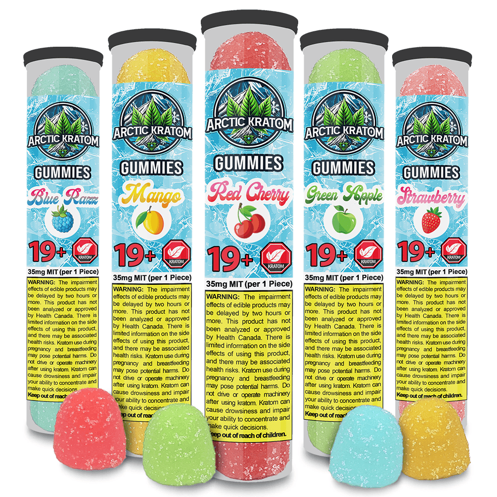 Discover a full spectrum of Arctic Kratom’s gummy lineup with our Sample Pack, featuring five 5-piece tubes.